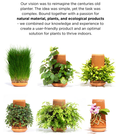 A VISION. The main goal was to provide plants a new place to live. It has to be straightforward, spotless, low-maintenance, and hydroponic, not using any soil or dirt. The secret was fusing the notions of hydroponics with porous material. In order to allow water to diffuse through the material and support plant growth on its surface, we developed a proprietary ceramic material with the ideal porosity and hygroscopic properties.