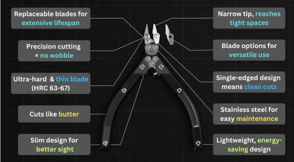 The NipSwitch Pro Nipper combines both rough and fine cutting capabilities, removing the worry of damaging expensive tools. It’s stress-free to use, and honestly, it’s a joy!"