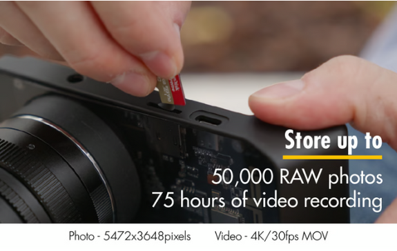 The CMOS sensor in SmartLens, which captures images in digital cameras, is significantly larger than those found in any smartphone on the market. In fact, the Sony Type 1 sensor in SmartLens is twice as large, and the entire sensor is exposed to light, allowing it to capture twice as much light and produce photos with far higher clarity and quality. The genuine M43 CMOS sensor upgrade, available in the add-on area, improves performance even further.