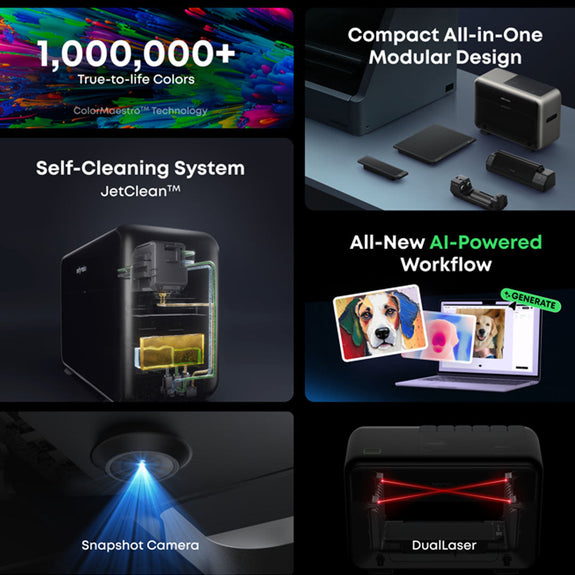 All-in-One Modular|Compact Size|3D Texture|True Colors That Last|300+ Materials|AI-Powered|Self-Cleaning|SMB|Precise Positioning