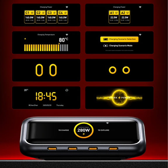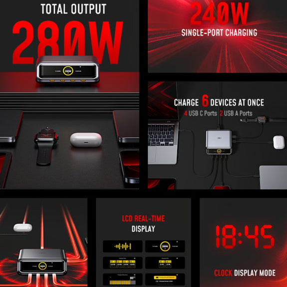 280W Total Output | 240W Single-Port Charging | Charge 6 Devices At Once | Real-Time LCD Screen | APP Control
